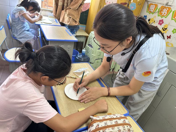 在教授“壮族铜鼓”和“壮锦团扇”时,同学们跟着我的思路,按照我逐步讲解的步骤和方法,一步一步完成了作品创作。在这个过程中,大家不仅掌握了相关的制作技巧,还深入了解了壮族文化的精髓,体验到了传统手工艺的魅力。那一刻,我意识到,我带来的不仅仅是知识,更是一份陪伴与希望,是与他们共同探索世界、点燃梦想的火种。