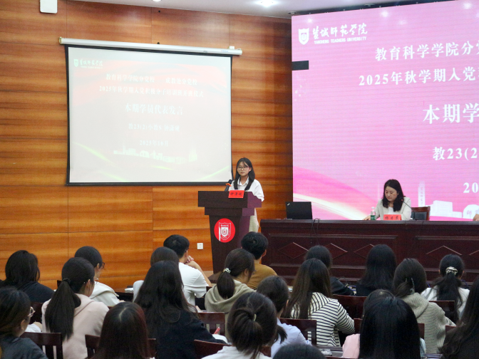 教23(1)班邱梦阳作为老生代表发言。她结合自身的培训感受与实践经历,勉励新学员以“悟初心”定方向,以“担使命”强本领,以“挑重担”长才干、以“感党恩”馈社会,将入党热情转化为强党性、练本领、作表率的实际行动。教23(2)班钟潇砚作为本期培训班学员代表发言。她表示,成为入党积极分子不是终点线,而是重新出发的起跑线,全体学员要时刻铭记习近平总书记的殷切嘱托,以理想为魂、以担当为骨、以奋斗为翼,努力成长为有理想、敢担当、能吃苦、肯奋斗的新时代好青年。
