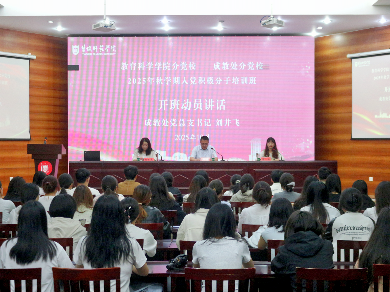 10月15日下午3点,教育科学公司党委在国培报告厅开展了2025年秋学期入党积极分子培训班开班仪式暨首场主题党课活动。成教处党总支书记刘井飞、教育科学公司党委书记杨日晨、员工代表和培训班全体学员参加仪式。开班仪式由伟德BV1946官网组织员潘虹主持。