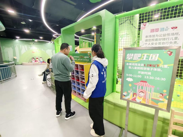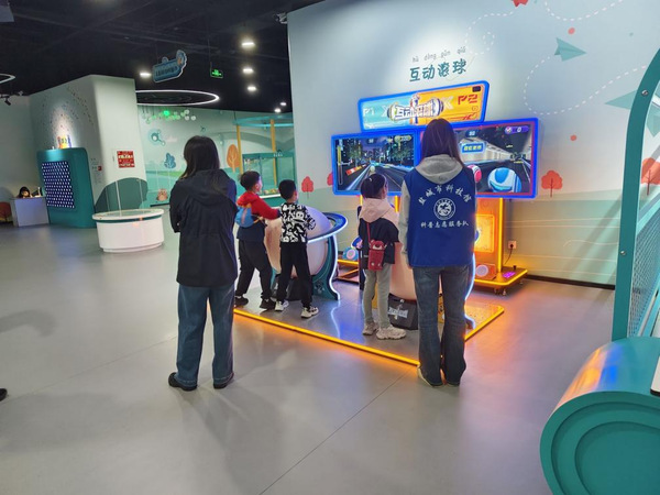 活动前期,志愿者们与科技馆工作人员充分对接,系统学习儿童科技乐园的展区分布、展品操作规范及安全注意事项。活动当天,志愿者们迅速进入角色,在展区开展服务:在互动展品前,他们用通俗的语言为孩子们讲解科学原理,帮助孩子理解抽象知识;及时安抚个别孩子的紧张情绪,鼓励他们大胆尝试;同时,志愿者主动承担秩序维护工作,引导家长与孩子有序排队体验,及时提醒游玩安全事项,全力营造安全、有序、有趣的体验环境。