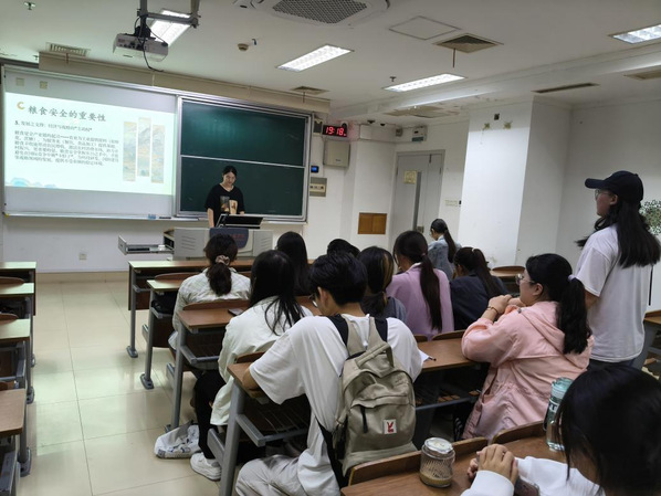 在飞花令环节中,同学们以“锄禾日当午,汗滴禾下土”的深情吟诵,感悟“粒粒皆辛苦”的农耕艰辛;借“稻花香里说丰年,听取蛙声一片”的经典传唱,描绘五谷丰登的美好图景。活动现场,诗词比拼展现文学底蕴,粮食历史解读深化认知,让新生们在文化浸润中厚植节粮爱粮情怀。