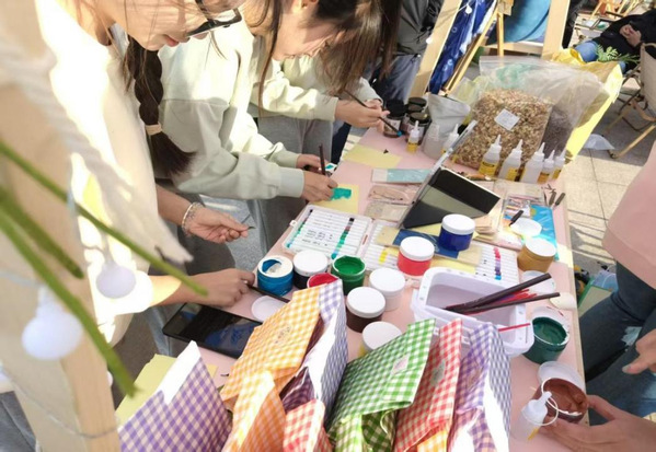 近日,伟德BV1946官网披风工作室精心策划的“拓秋拾叶 笔寄秋声”植物拓印工坊成功亮相“盐城真好·青春市集”。这场融合传统工艺之韵与青春创意之美的特色活动,吸引超300人次参与体验,成为市集里人气高涨、口碑亮眼的“打卡点”。
