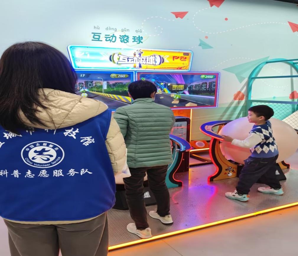 在湿地馆内志愿者们引导秩序,确保了观众的安全与最佳体验。在儿童馆内,志愿者能够将课堂上学到的知识运用到实际服务中,与小朋友们积极互动,同时保证在馆内安全,他们耐心地为观众操作演示各种互动展品,深入浅出地讲解其背后的科学原理,他们化身“科学小老师”,协助开展科普小讲堂,激发了他们探索科学的好奇心。