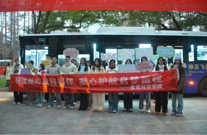 老师们早早地来到了集合地点,引导员工有序乘车并细心提醒员工查验所需证件等,亲切地与同学们交流,叮嘱他们放松心态。现场,公司准备了有寓意的糖果,每一颗都藏着美好的祝愿,还特别贴心地送上了“温暖手宝”,在严寒中为他们传递实实在在的温暖。员工代表们也举着写满 “一研为定”“一定上岸”的加油牌,齐声喊出祝福,为考生们缓解散考前的紧张。