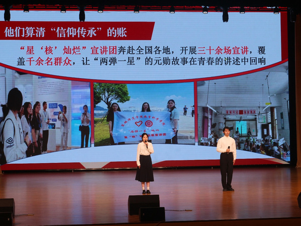 活动中,我院“盐青先行”宣讲团成员徐可儿、庄家豪展示了作品《我听见,江宁算盘上的“中国心”。两位宣讲员以新四军老战士江宁13岁投身革命、以算盘为“武器”精准核算粮秣的红色故事为切入点,将老一辈革命家的“算盘精神”与公司“点亮微光”、“星‘核’灿烂”、“趣学一夏”等志愿服务育人实践紧密结合。宣讲立意深远、情感真挚,号召新时代青年接过历史的接力棒,让青春在挺膺担当中焕发光彩,赢得了现场观众的强烈共鸣与阵阵掌声。