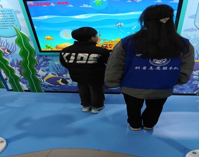 培训结束后,志愿者们迅速投入岗位,分赴各个展区开展工作。在趣味科学展区,志愿者们化身“科普小老师”,用浅显易懂的语言为参观的小朋友拆解原理,手把手指导他们操作实验装置;在展厅入口与各楼层通道,志愿者们耐心引导人流、解答参观咨询,协助工作人员维护现场秩序。活动现场,志愿者们热情饱满、认真负责的态度,赢得了参观者和科技馆工作人员的频频点赞。